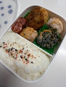 お弁当サイズも作ったので、今日は茶色で冷凍食品ばかりだけどお弁当もできました♪