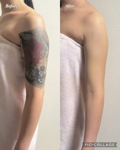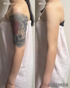 こちらのタトゥーカバーのお客様は、関東から大阪へ両親が遊びに来られるとの事で、そんな両親に余計な心配をかけたくないという事でご相談を頂きタトゥーカバーの施術のお申し込みを頂きました♪