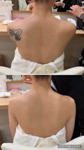 タトゥーカバーの施術はヘアメイク様と同時進行で進めさせて頂いたのですが、ヘアメイク様や式場のスタッフの方々に大絶賛してくださり『今まで見たタトゥーカバーの中でいちばん綺麗で凄い!』って言ってもらえました♪