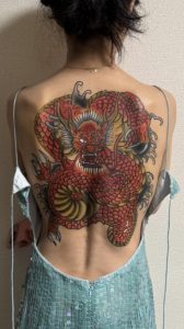 お背中に大きく赤い龍をエアブラシで描かせて頂きました♪
