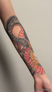 そしてこちらのお客様は、本物のタトゥーを同じ箇所に彫りたいけど、お仕事柄難しいので、消えるボディアートでどんな感じになるか試したいという事でお申し込みを頂きました♪