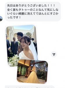 結婚式を終えられた後、素敵なお写真ととても励みになる嬉しいDMもいただくことができました♪