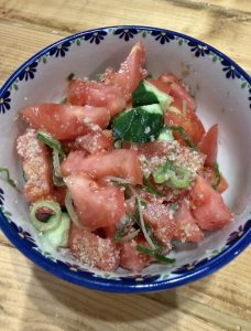 トマトときゅうりときざみネギを、ごま油と白だしとすり胡麻をまぜるだけのこれが、めちゃくちゃ美味しんです( ´ ▽ ` )ノ