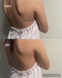 またお帰りの際に花嫁様から、『このタトゥーカバーって、お風呂とか入れるんですか?』とお聞きされましたので、『使ってるファンデーションはお湯とかでは溶けないのでお風呂も入れますよ!』とお伝えさせて頂きましたら、『温泉とかに行く時に、またお願いするとおもいます!』と仰ってくださいました♪