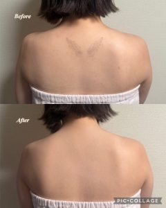 現在、レーザー治療によるタトゥーの除去中とのことで、タトゥーの色自体は薄くなってるのですが手術による凹凸があり少し形が浮きでておりますが目立たなくさせて頂きました!