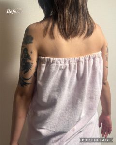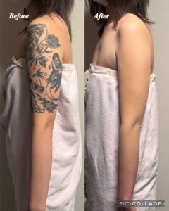 広範囲のタトゥーでしたが、撮影日当日の施術がお時間的に難しいとのことでしたので、前日の夜(入浴後)にご来店頂きタトゥーカバーのメイクをさせて頂きました♪