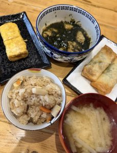 今日の朝ごはんは、昨日の晩ごはんの残りものの筍の春巻きと若竹煮と筍ご飯でした( ´ ▽ ` )ノ