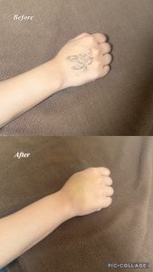 - ボディアートを使用し、実際のタトゥーカバー同様の手順でそれらを隠してのタトゥーカバーのお勉強