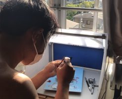 こんにちは 朝からスクロールカーテンへ、ワンちゃんの絵をペイントしております♪エアブラシアートキヨです( ´ ▽ ` )ノ 少し休憩中に、先日のエアブラシスクールに、兵庫県のH君が受講に来てくれたブログの更新でございます・・・